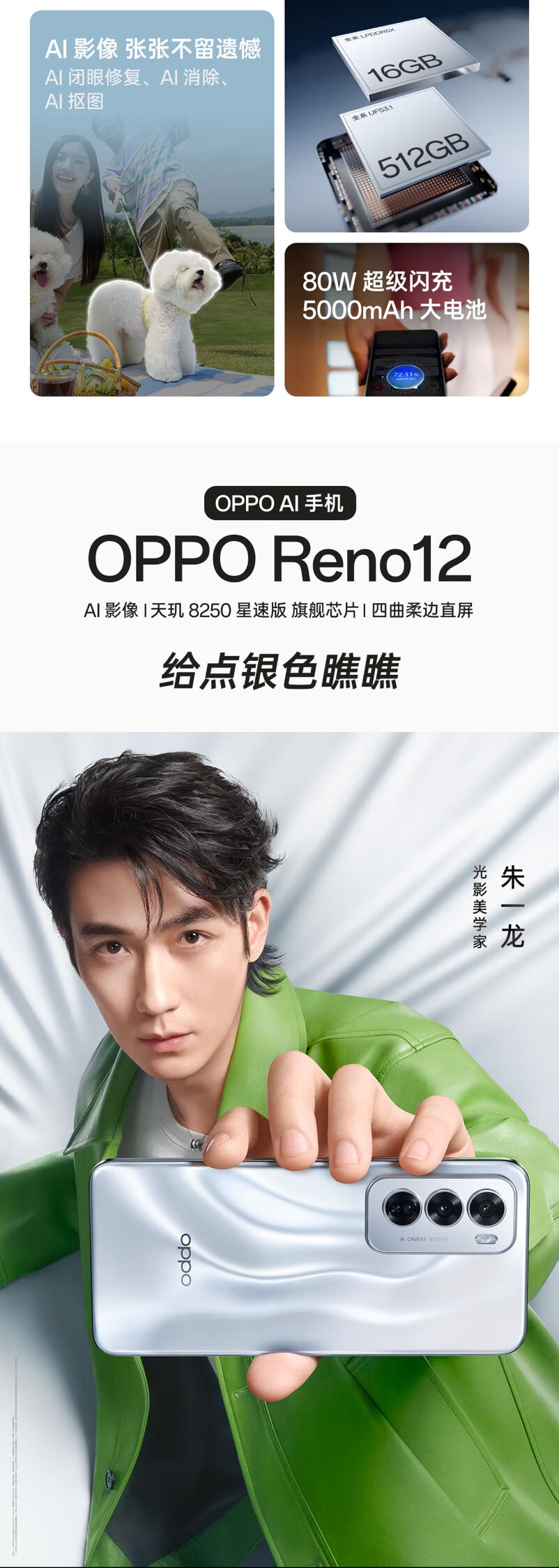OPPO Reno12 超美小直屏 安卓Live图 天玑旗舰芯 12GB+256GB 千禧银 游戏智能 新款 AI影像5G拍照手机